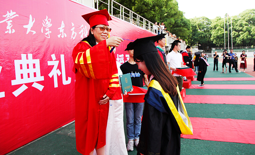 校歌奏起,萦绕在整个东田径场,也萦绕在每个人的心田,典礼气氛走向高潮。熟悉的旋律牵动着毕业生们身上每一处细胞,很多人用泪水诉说着无法言喻的情感。随后,毕业生身着学士服,院学位授予委员会代表们为在场的1044名毕业生拨穗并颁发学位证书,毕业生一一与导师合影留念。