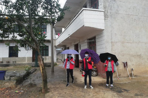 大学生志愿者进村宣传疫情防控知识